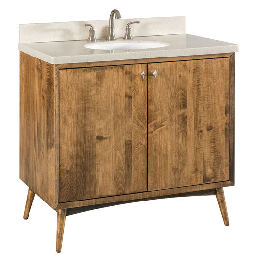 The Amish Century vanity / lavatory is a reproduction of Mid-Century Danish style furniture.